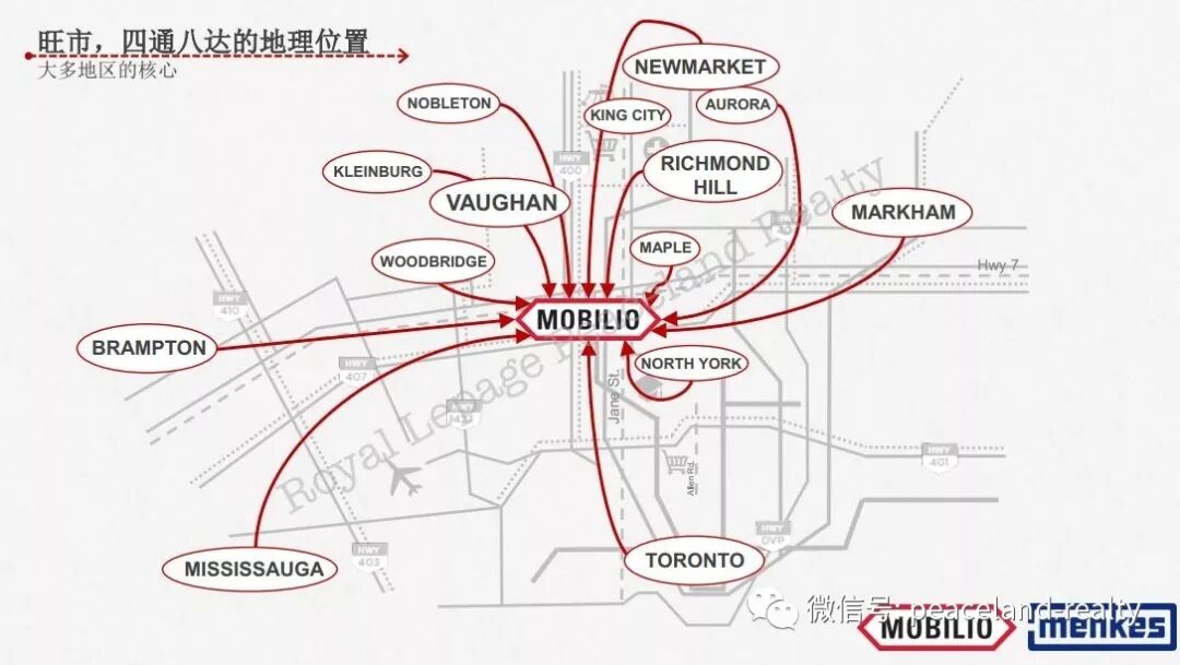 在市政府和省政府的城市规划下,Vaughan 保持着稳定的增长与建设,并重点发展VMC中心的住宅和办公楼。Mobilio 是知名的开发商Menkes在VMC核心地段大型社区项目的第一期,举步交通枢纽(VMC&407),并将在VMC中心建设涵盖高层公寓和联排别墅的多样化住宅区及生活设施。