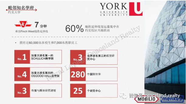 自从几年前多伦多地铁线路延长之后,旺市的交通就变得非常方便了。乘坐地铁,从VMC出发到达York大学仅需要2站。即便驱车,也只需7分钟而已。